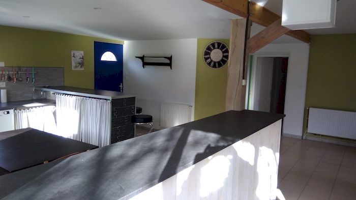 - une vaste pièce de vie (65 m2) comprenant la salle à manger et une grande cuisine entièrement équipée : vaisselle, réfrigérateur, four traditionnel, micro-ondes, lave-vaisselle ... donnant sur le jardin.